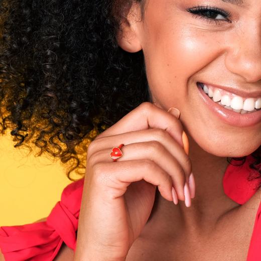 This charming heart enamel ring is crafted in lustrous yellow plated sterling silver and features a round-cut, bezel-set created white sapphire gemstone studded at the center of the red enamel. Win Mom's heart with a perfect birthday or Mother's Day gift when you present her with this heart red enamel ring. Polished to a brilliant shine, this ring is the perfect addition to any jewelry collection.