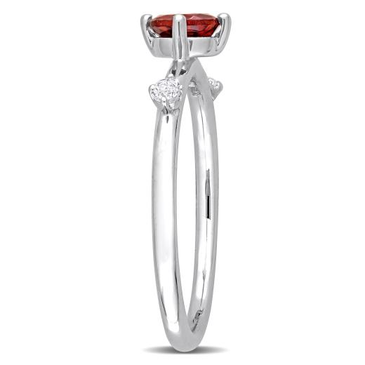 Lighten up your day with this Garnet & White Topaz 3-Stone Stackable Ring. Crafted in lustrous sterling silver, it features a round-cut, prong-set garnet gemstone (5 x 5mm) studded at the center with two round-cut, prong-set white topaz gemstone augmented on its thin band in station style. Polished to a brilliant shine, pair this glamorous ring with any ensemble for a bold and stylish look. Give yourself a shimmering look with this trendsetting 3-stone ring.