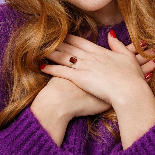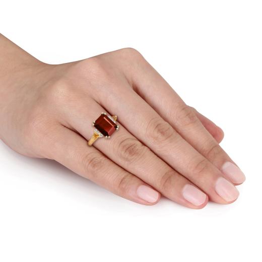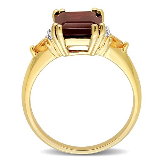 The Julianna B Sterling Silver Yellow Plated Garnet, Citrine, and Diamond Ring is a striking and colourful piece of jewellery that artfully combines the warm and inviting hues of garnet and citrine with the sparkle of diamonds. The yellow-plated sterling silver band adds an extra layer of charm to the design. This ring is designed to make a vibrant and stylish statement, perfect for various occasions.