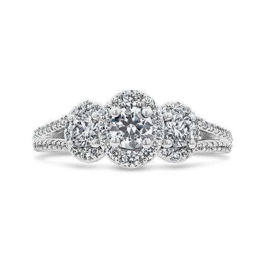 Elevate your elegance with the timeless charm of the 14K White Gold 1.20CTW Diamond Three-Stone Ring. This exquisite piece features a dazzling trio of diamonds, totaling 1.20 carats, set in a classic three-stone halo design. The central round-cut diamond is flanked by two smaller diamonds on each side, creating a harmonious arrangement that symbolizes the past, present, and future. Whether as an engagement ring or a meaningful gift, this piece is a testament to enduring love and enduring style.