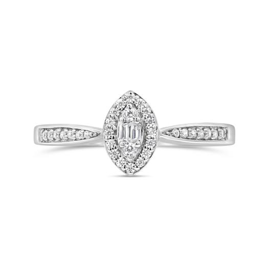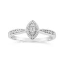 Express your commitment with elegance and style through this Sterling Silver 0.15CTW Marquise-Shaped Diamond Promise Ring. Crafted in lustrous sterling silver, this ring showcases a marquise-shaped arrangement of diamonds with a total carat weight of 0.15. The marquise cut, known for its elongated and graceful form, adds a touch of sophistication to the design. The sparkling diamonds are carefully set to create a captivating and romantic piece that symbolizes the promise of love and devotion. Whether as a symbol of commitment or a thoughtful gift, this diamond promise ring radiates beauty and sentiment, making it a cherished addition to any jewellery collection.