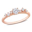 This pretty engagement ring is crafted in 14-karat rose gold. This sleek diamond ring feature two princess-cut and five round-cut shimmering diamonds that are beautifully embellished on the ring in a prong setting. With exquisite luster and incredible shine, choose this wedding ring for your bride-to-be as you celebrate this special milestone and begin the next stage of your lives together. This elegant diamond ring is the perfect addition to any jewellery collection.