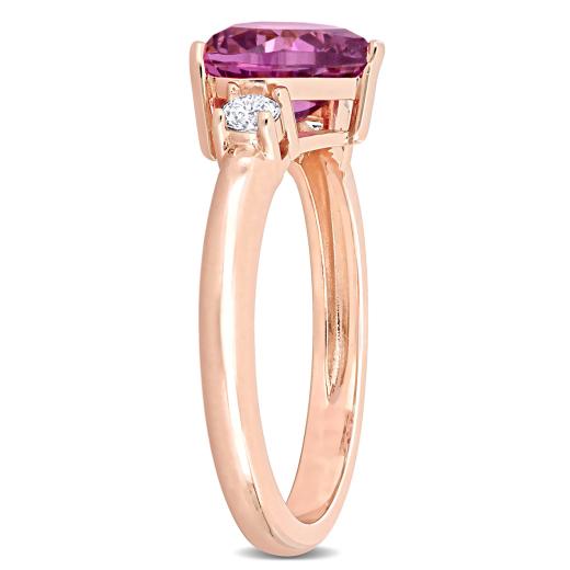 Introducing our exquisite 2.20 CT TGW Pink Cubic Zirconia & Created White Sapphire Fashion Ring in Rosse Plated Sterling Silver —a dazzling fusion of femininity and sophistication. At the heart of this ring is a brilliant pink cubic zirconia, radiating a captivating rosy hue that exudes charm and playfulness. The central stone is gracefully complemented by the clear brilliance of a created white sapphire, enhancing the overall allure of the piece. Each stone is intricately faceted to maximize its sparkle, ensuring the ring captures attention with every movement.