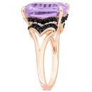 Elevate your style with the Women's 6 1/3 CT TGW Rose de France - Black Sapphire Fashion Ring in Pink Silver. This captivating cocktail ring is a perfect blend of unique elegance and modern sophistication, featuring an exquisite octagon-cut Rose de France gemstone that exudes a soft, enchanting pink hue, complemented by round-cut black sapphire gemstones. Crafted with meticulous attention to detail, this pink silver ring showcases a split-shank design that adds a touch of contemporary flair, making it a statement piece to treasure. The delicate balance between the gentle pink Rose de France and the bold black sapphires creates a captivating contrast that demands attention. Its stackable feature allows for versatile styling, enabling you to express your personal style. Whether worn individually or as part of a stack, this ring reflects the wearer's refined taste and adds a touch of unique elegance to any ensemble. Discover the enchanting allure of Rose de France and the bold elegance of black sapphire in this masterpiece, a celebration of modern sophistication and timeless charm.