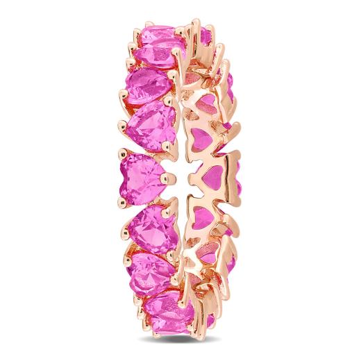 Indulge in the epitome of romance with our 4CT TGW Created Pink Sapphire Heart Eternity Ring in Rose Silver. This captivating piece is a celebration of eternal love, featuring a continuous loop of 4 carats of created pink sapphires meticulously set in a heart-shaped design.The rose silver setting adds a touch of warmth and uniqueness to this timeless ring, creating a perfect blend of modern elegance and classic charm. Each pink sapphire sparkles with brilliance, making this eternity ring a symbol of everlasting commitment and passion.Cherish the moments of love with a ring that speaks volumes. Our Created Pink Sapphire Heart Eternity Ring in Rose Silver is a radiant expression of love, promising a lifetime of joy and romance.