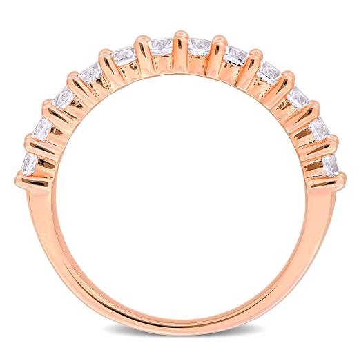 Enhance your elegance with our 1 1/10ct TGW Created White Sapphire Anniversary Band in Rose Silver. This beautiful band features a row of stunning created white sapphire gemstones that sparkle brilliantly in a warm rose silver setting. Perfect for celebrating your love and commitment on your anniversary or as a stunning addition to your everyday jewelry collection.