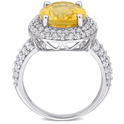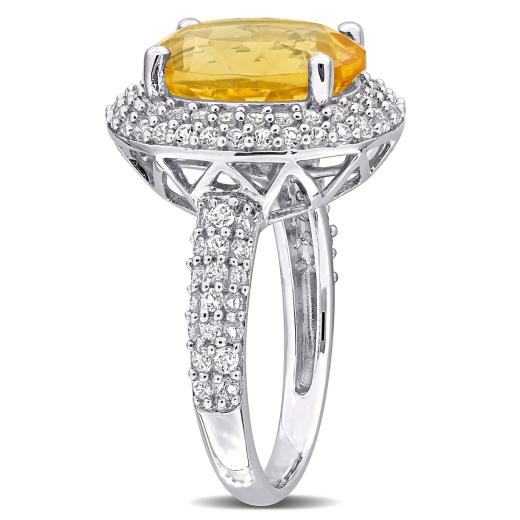 Radiate warmth and sophistication with our 5 5/8ct TGW Oval-Cut Citrine and White Topaz Double Halo Ring in Sterling Silver. This captivating ring features a luminous oval-cut citrine gemstone with a generous total weight of 5 5/8 carats, framed by a sparkling double halo of white topaz gemstones. The combination of the vibrant citrine and the dazzling white topaz creates a harmonious symphony of colour and brilliance. Crafted in sterling silver, the ring boasts a timeless and elegant design that seamlessly blends classic charm with modern flair. Make a statement with the luxurious glow and captivating design of this citrine and white topaz double halo ring, perfect for adding a touch of glamour to any occasion.