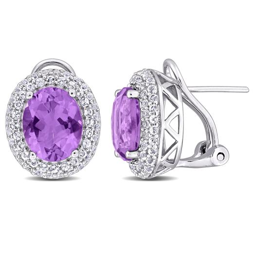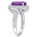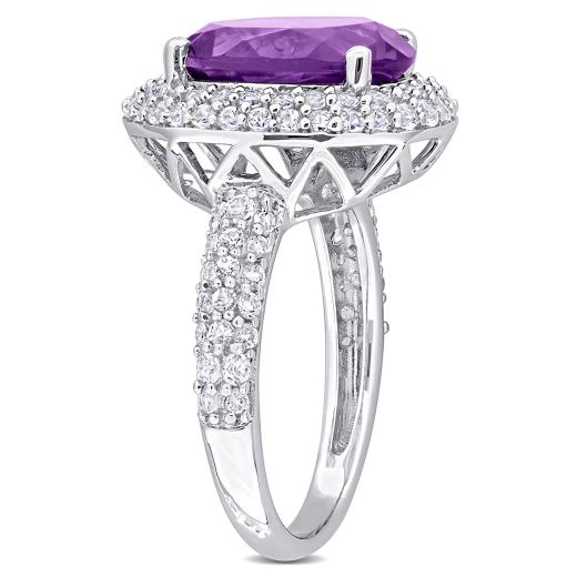 Elevate your style with our 5 1/3ct TGW Oval-Cut Amethyst and White Topaz Double Halo Ring in Sterling Silver. This enchanting ring features a vibrant oval-cut amethyst gemstone with a total weight of 5 1/3 carats, encircled by a sparkling double halo of white topaz gemstones. The rich purple hue of the amethyst, combined with the brilliant white topaz, creates a captivating and elegant design. Crafted in sterling silver, the ring seamlessly blends classic charm with contemporary flair, making it a versatile and eye-catching accessory. Slip this ring onto your finger to add a touch of glamour and sophistication to any outfit, making it perfect for both formal occasions and everyday chic.