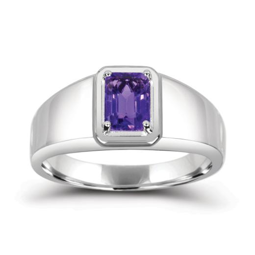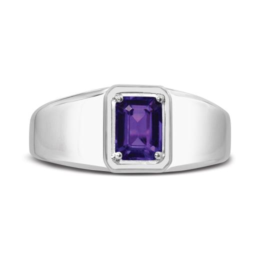 This striking men's ring features a rich amethyst gemstone set in durable sterling silver. The bold purple hue of the amethyst contrasts beautifully with the sleek silver band, making it a sophisticated and standout accessory that adds a touch of colour and elegance to any look.