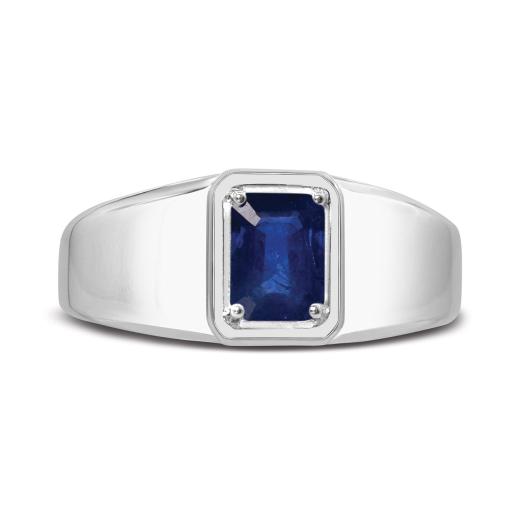This striking men’s ring features a bold blue sapphire set in a sleek sterling silver band. The deep blue hue of the sapphire adds a touch of sophistication and elegance, while the sterling silver enhances the stone’s brilliance with its polished finish. The clean, contemporary design makes this ring perfect for everyday wear or as a statement piece for special occasions.