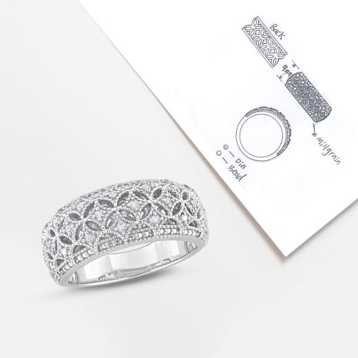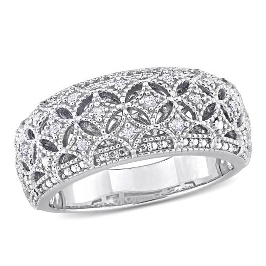 This exquisite 1/10ct TDW Diamond Wide Band Fashion Ring crafted in Sterling Silver, a timeless statement piece to elevate any ensemble. Featuring a sleek and wide band design, this ring exudes elegance and sophistication. Adorned with sparkling round-cut diamonds totaling 1/10 carat in weight, each stone is meticulously set to create a mesmerizing brilliance. The sterling silver setting adds a touch of luxury and durability to this stunning piece. Whether worn alone for a touch of everyday glamour or paired with other accessories for a more dramatic effect, this fashion ring is sure to become a cherished addition to your jewelry collection. Flaunt your style and sophistication with this radiant diamond ring that effortlessly combines classic beauty with contemporary flair.