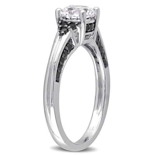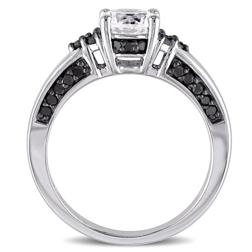 Mark your special moment with this captivating 1 3/8ct TGW Created White Sapphire and 3/8 CT TW Black Diamond Engagement Ring. Crafted in sterling silver with black rhodium accents, the ring features a stunning created white sapphire center stone, flanked by sparkling black diamonds. The contrast between the white sapphire and black diamonds creates a unique and sophisticated look, perfect for symbolizing your distinctive and timeless love.