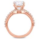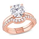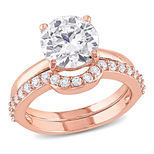 Presenting the exquisite Women's 2 4/5 CT TGW Created White Sapphire Bridal Set in 10k Pink Gold. This stunning 2-piece set features an engagement ring and a wedding band, designed to symbolize timeless elegance and romance.The engagement ring showcases a dazzling created white sapphire gemstone with a total gemstone weight of 2 4/5 carats. The solitaire setting emphasizes the brilliance and clarity of the white sapphire, creating a captivating focal point. The pink gold band adds a touch of warmth and femininity to the ring, enhancing its overall charm.The matching wedding band is elegantly designed to complement the engagement ring, creating a seamless and cohesive look. The classic style of the wedding band features a stackable design, allowing for effortless pairing with other rings to create your own personalized stack.