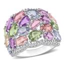 Elevate any women's wardrobe with this stunning 15 1/2ct TGW Multi-Color Sapphire and 1/4ct TDW Diamond Cocktail Ring in 14k White Gold. The ring features a dazzling array of sapphires in different colors, creating a vibrant and eye-catching display that's sure to turn heads. The 1/4 carat of diamonds adds sparkle to the sapphires and adds a touch of elegance and glamour to the design. The 14k white gold band provides a classic and timeless look that will complement any outfit. This ring is the perfect statement piece for any special occasion or as a unique addition to any jewelry collection.
