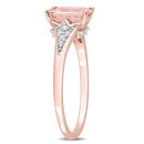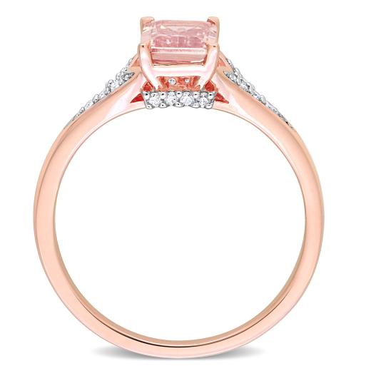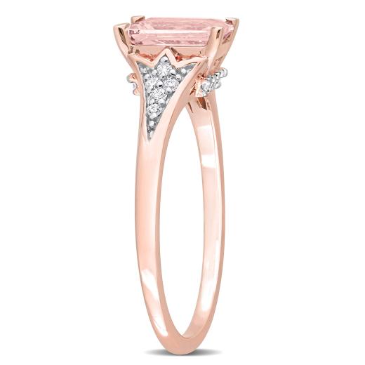 Ask her to spend the rest of her life together with this enchanting Morganite and Diamond Engagement Ring. Crafted in lustrous 10-karat rose gold, this striking engagement ring features one octagon-cut prong-set morganite (7x5mm) gemstone decorated with 18 round-cut, pave-set, buttercup-set diamonds (G-H, I2-I3) on either side. Enhanced with a polished finish, this splendid ring will forever be a symbol of true love and commitment. This engagement ring is comfortable and can be stacked with a matching wedding band.
