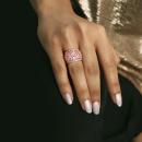 Enrich your look with this ethereally beautiful Rose Quartz Vintage ring. Crafted in rose plated sterling silver, this glitzy ring features many oval-cut, prong set, rose quartz gemstones of different sizes with five round-cut, prong set, diamonds (G-H,I3) along the edges of the ring. Polished to brilliance, this ring is sure to become your new favorite statement piece for all occasions.