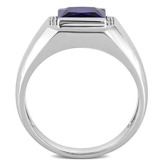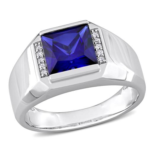 Pamper your man with this classy Men's Halo Ring. Crafted in shimmering white gold, this ring showcases a square-cut, bezel-set created blue sapphire gemstones (8x8mm) at the center surrounded by 10 round-cut, pave-set diamonds (G-H, I2-I3). With a high polished finish, this ring is a perfect gift for any occasion. Trend on Instagram as the most fashionable couple with this timeless beauty and tell the world your partner has the best styling sense.