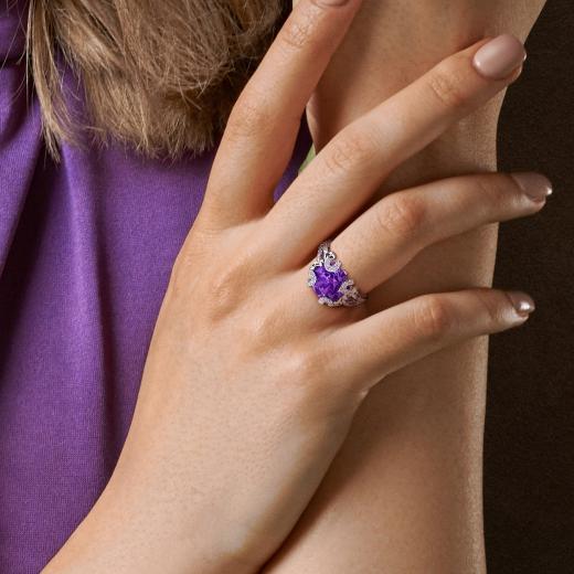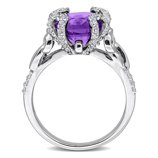 This stunning 4 1/8 CT TGW cocktail ring features a vibrant amethyst surrounded by sparkling white topaz accents, all set in polished sterling silver for a look of timeless elegance and bold sophistication.
