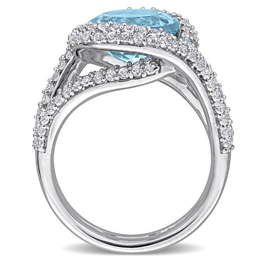 This stunning cocktail ring features a dynamic crossover design adorned with 6 carats total weight of radiant sky blue topaz and sparkling white topaz. Set in sterling silver, it offers a bold yet elegant statement piece perfect for adding vibrant color and refined sparkle to any occasion.