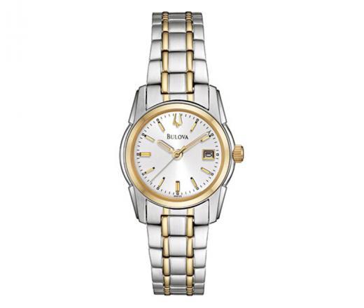 From the Classic collection. In stainless steel with two-tone finish, domed crystal, silver sunray dial, luminous hands and markers, calendar, second hand, screw-back case, and locking fold-over clasp and water resistance to 30 meters.