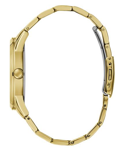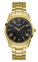 Take your style to new levels with this classic gold-tone analog watch, complete with a black dial. U1194G3