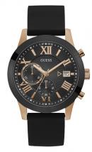 Add a sleek finish to your looks with the Black multifunction watch. Features rose gold-tone trim, a logo detail and a silicone buckle. Day and date dials. U1055G3