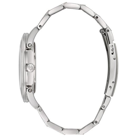 From the Classic Collection. In stainless steel with domed crystal, blue bi-level sunray dial, calendar, second hand, luminous hands and markers, screw-back, and double-press fold-over clasp. 96B220