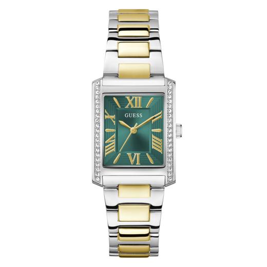 Add a touch of classic styling to your watch wardrobe with this new tank style featuring roman numeral indices, a stoned bezel and an elegant polished bracelet.